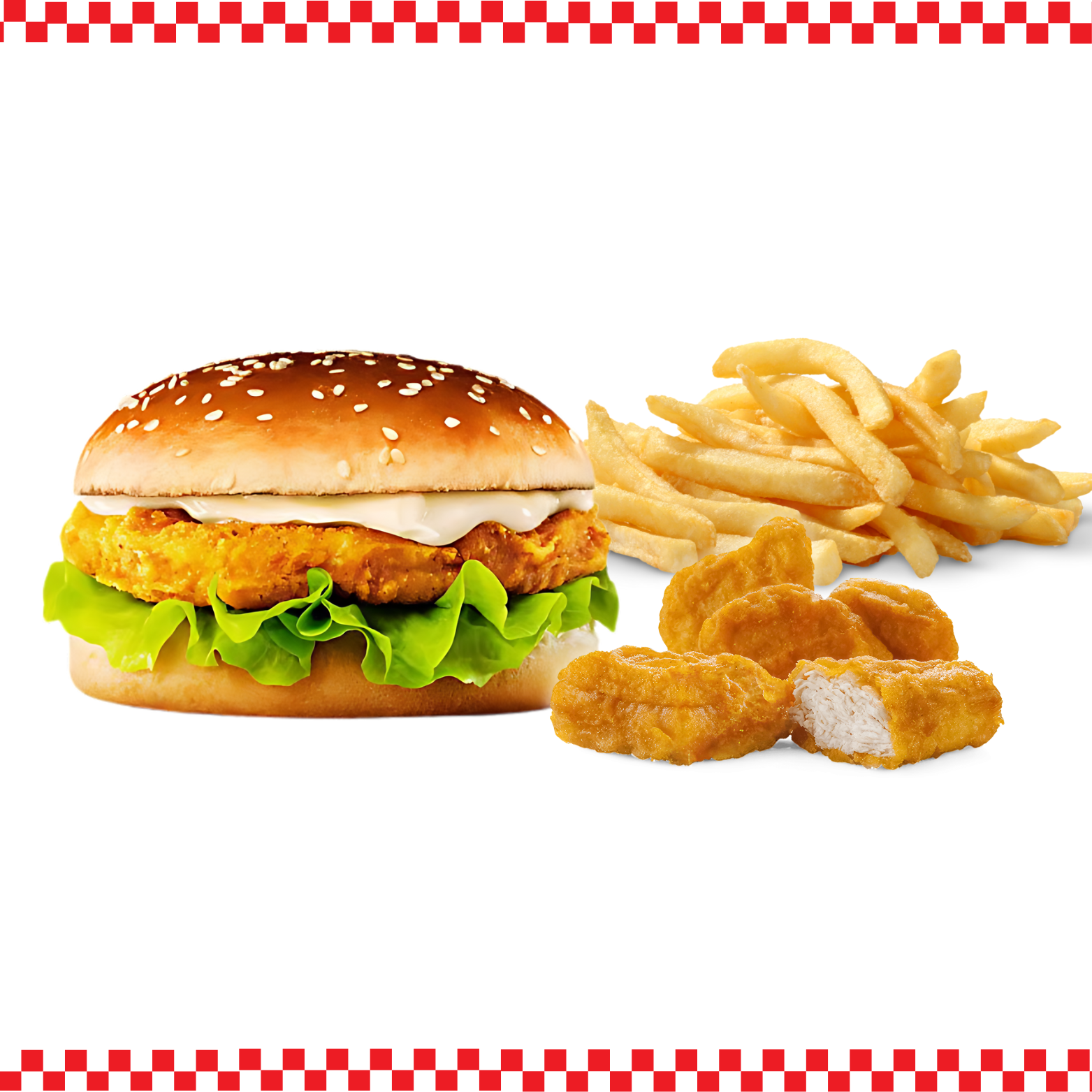 Crunch Chicken Burger with fries and 5 Nuggets